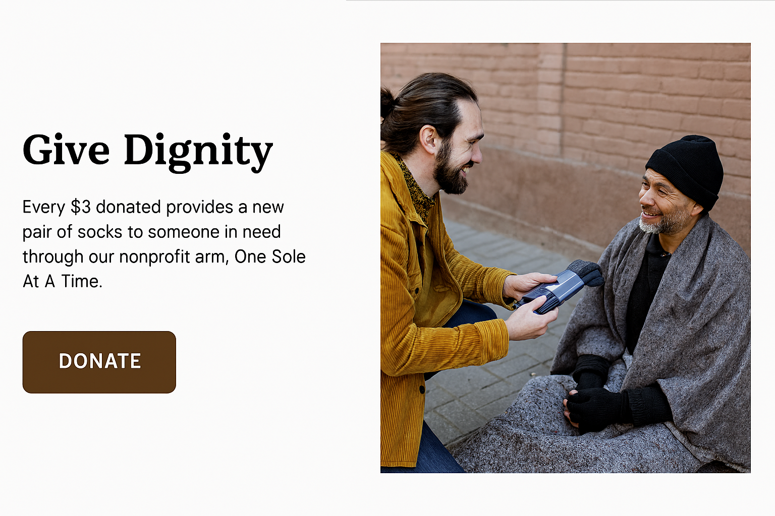 Beyond comfort, our high-quality socks carry a purpose. When you buy one pair, we donate a pair directly to an individual in need, supporting their journey back to stability.
